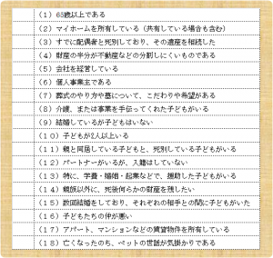遺言必要度チェックリスト
